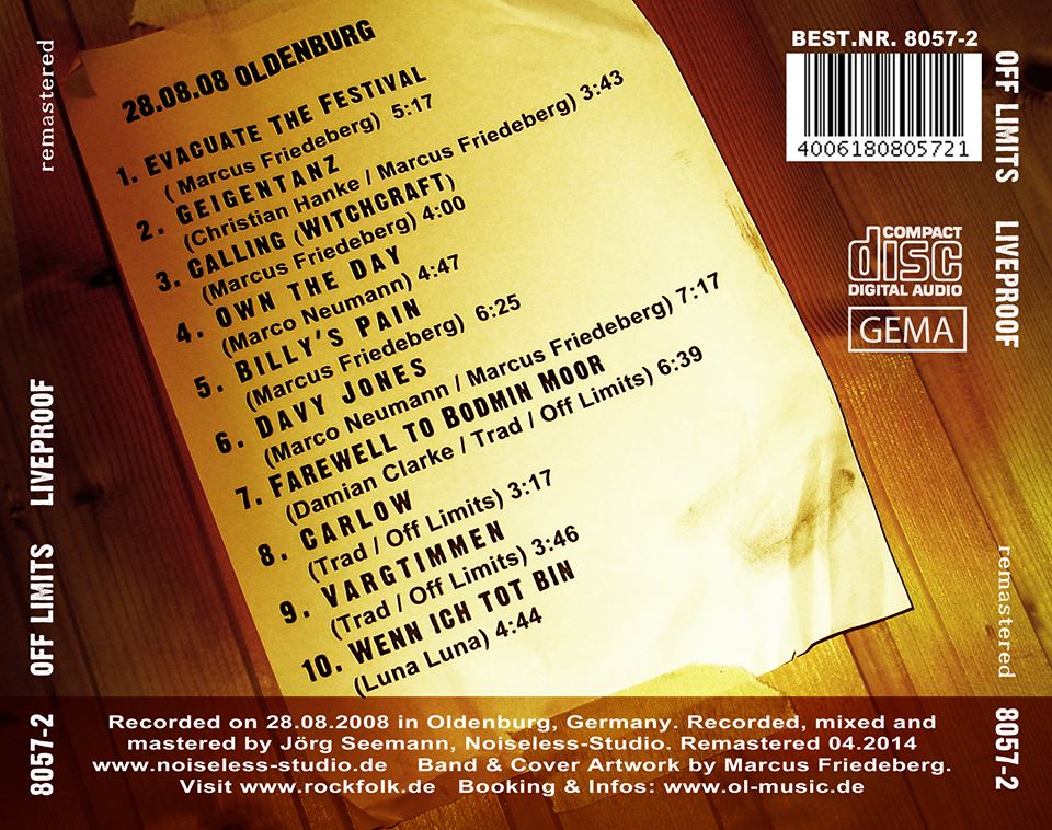 In revived traditionals and strong original compositions "Off Limits" oscillates the roots of folk and the energy of rock to a dynamic Tesla-field. They left the well trodden path and found a different approach, which is... Steam Rock Folk.