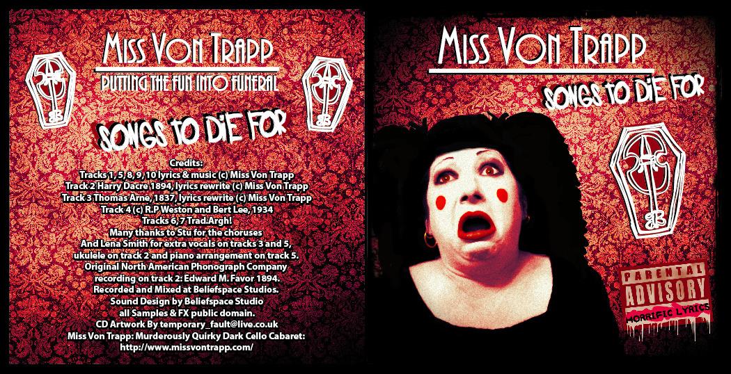 "Like a gothic doll from a horror movie sits Miss Von Trapp cackling and sat astride her electric cello. Booming out morbidly moribund lyrics and revamped traditional songs with a disturbing 'sing-a'long' style reminiscent of a scene from a Tim Burton film, Miss Von Trapp will hold you spellbound with her dark operatic capers and yet it is laughter that abounds in her audience as we find mirth in the twisted details of her songs and story telling. I recommend experiencing her performances - they're to DIE for."